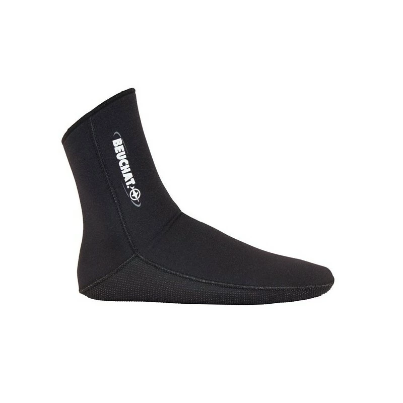 Chausson de plongée Beuchat en néoprène 4mm avec semelle à PICOTS anti-dérapante. Néoprène souple facile à enfiler.