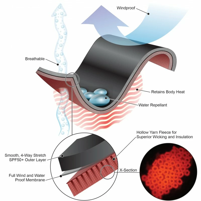 Sharkskin utilise pour ses vĂŞtements, 3 couches distinctes.