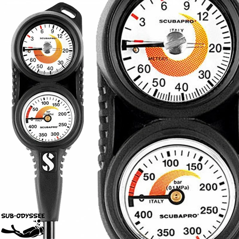 Profondimètre rempli d’azote étalonné pour 70 m, avec graduation parabolique facilitant la lecture en petite profondeur.