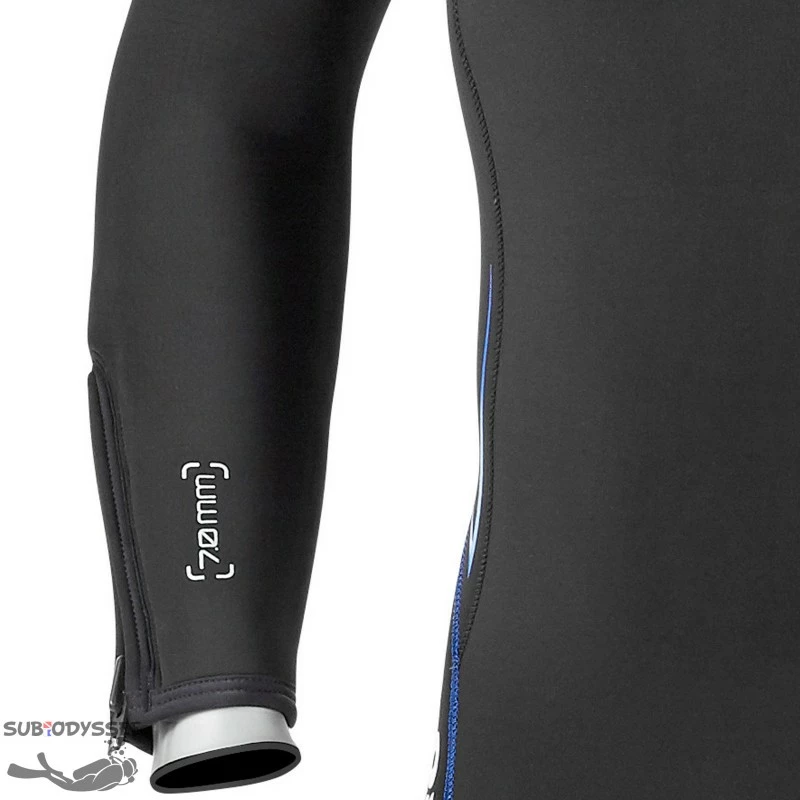 Manchon Poignet : Oui Double manchon zippé avec manchon intérieur à retourner, en jersey intérieur & néoprène lisse extérieur.