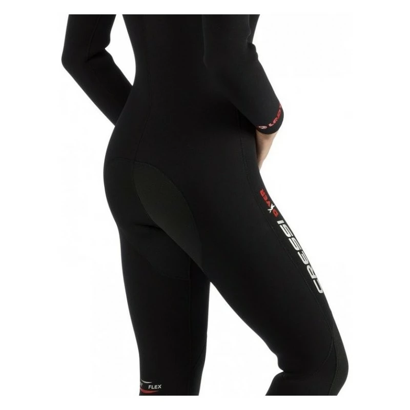 – La mĂŞme solution a Ă©tĂ© adoptĂ©e pour les chevilles mais avec l’ajout d’une fermeture Ă glissières pour faciliter l’enfilage.