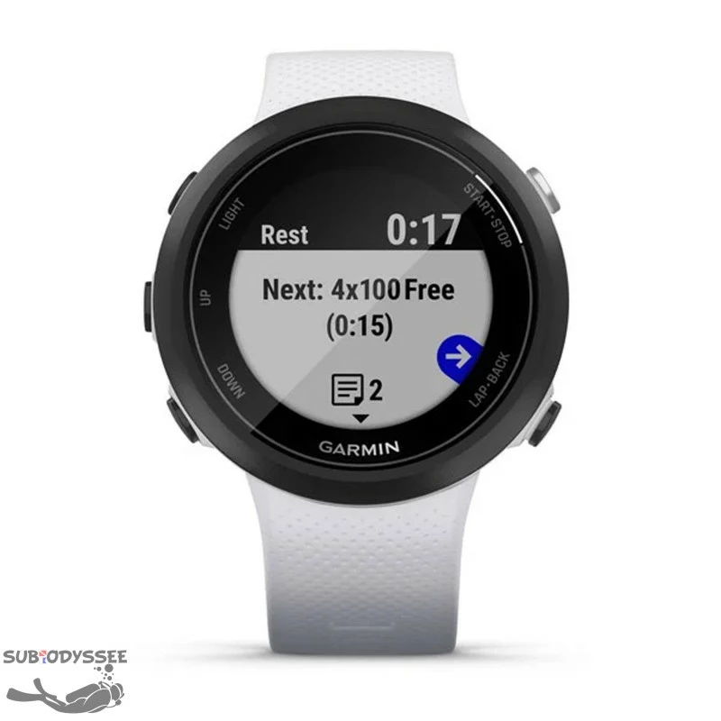 Parmi les fonctionnalités d’entraînement avancé les plus significatives : la vitesse de nage critique estime votre vitesse de seuil anaérobique afin de suivre vos progrès. Les alertes d’allure par longueur vous aident à respecter vos objectifs. L’enregistrement des entraînements vous permet de suivre le temps & la distance de chaque exercice (battements de jambes, nage à un bras, godille, etc.). Besoin d’une pause ? La Garmin Swim 2 accompagne vos temps de repos avec ses deux minuteurs dédiés.