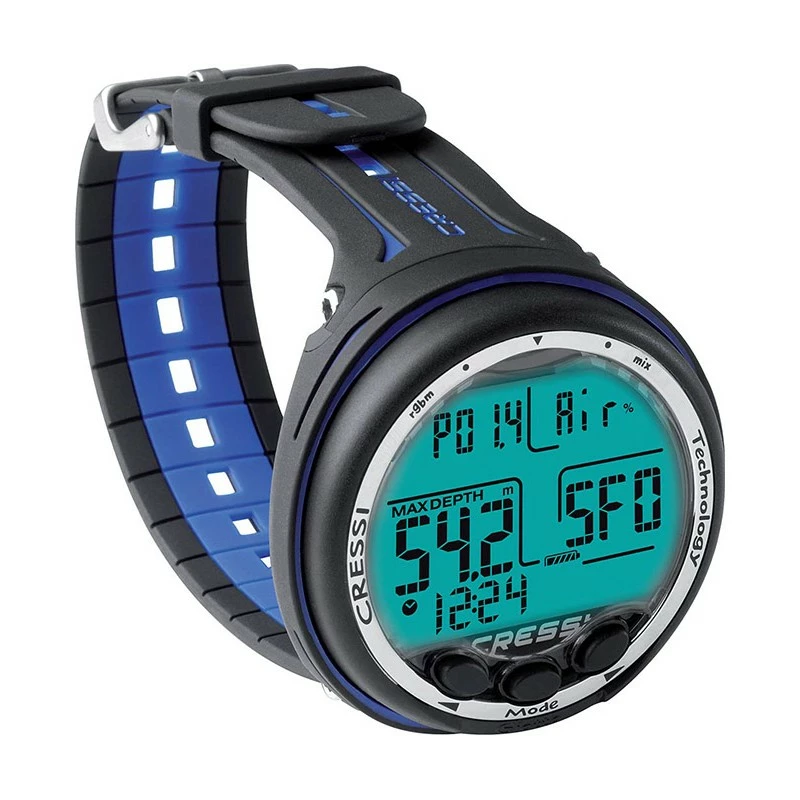 Algorithme double mélange gazeux CRESSI RGBM. Ce nouvel algorithme, créé en collaboration entre Cressi & Bruce Wienke, est basé sur le modèle Haldane, intégrant les facteurs RGBM pour des calculs sûrs de décompression dans les cas de plongées répétitives sur plusieurs jours & avec des mélanges gazeux.