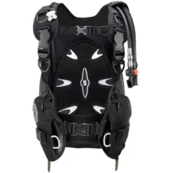 – Des boucles d’Ă©paules pivotantes Ă largage rapide permettent un ajustement facile Ă la morphologie du plongeur.