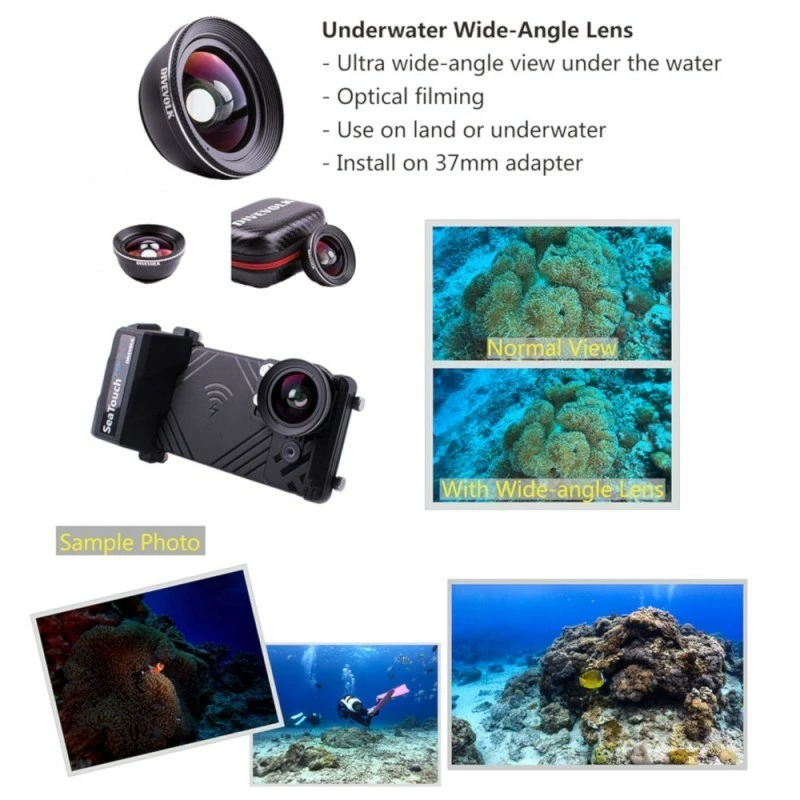 Lentille grand-angle SeaLense, 105° sous l’eau.