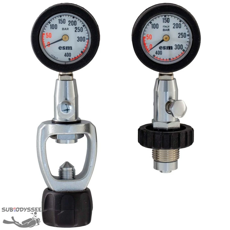 Manomètre de surface pour le contrôle de pression des bouteilles de plongée. Existe en deux versions l’un en DIN l’autre en INT (étrier).