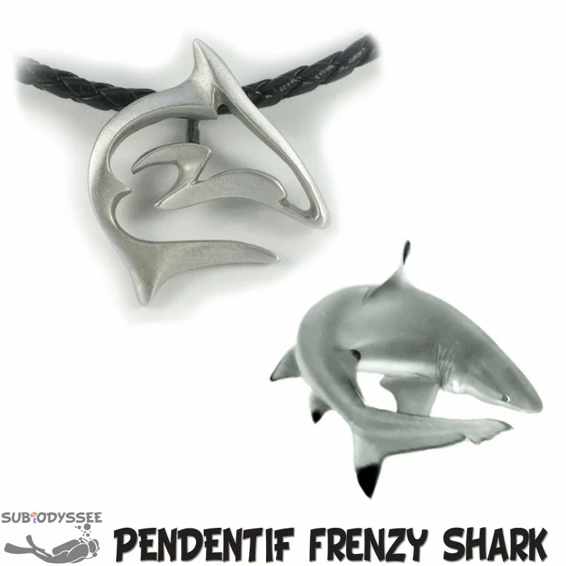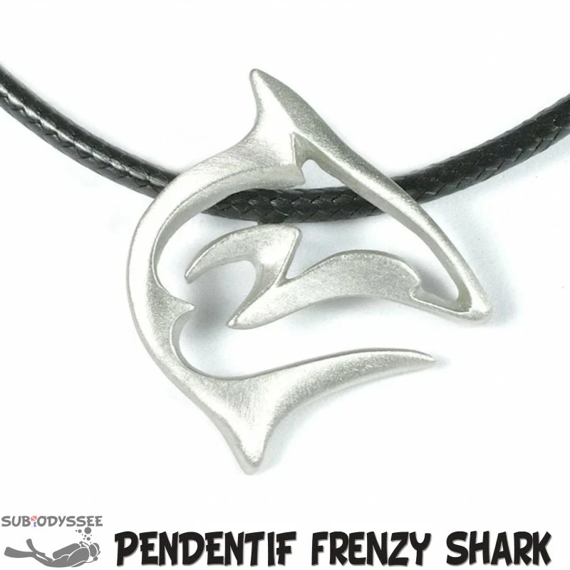 Collier avec motif FRENZY REEF SHARK en Ă©tain sans plomb, muni d’une couche d’acrylique protectrice pour l’aider maintenir son Ă©clat.