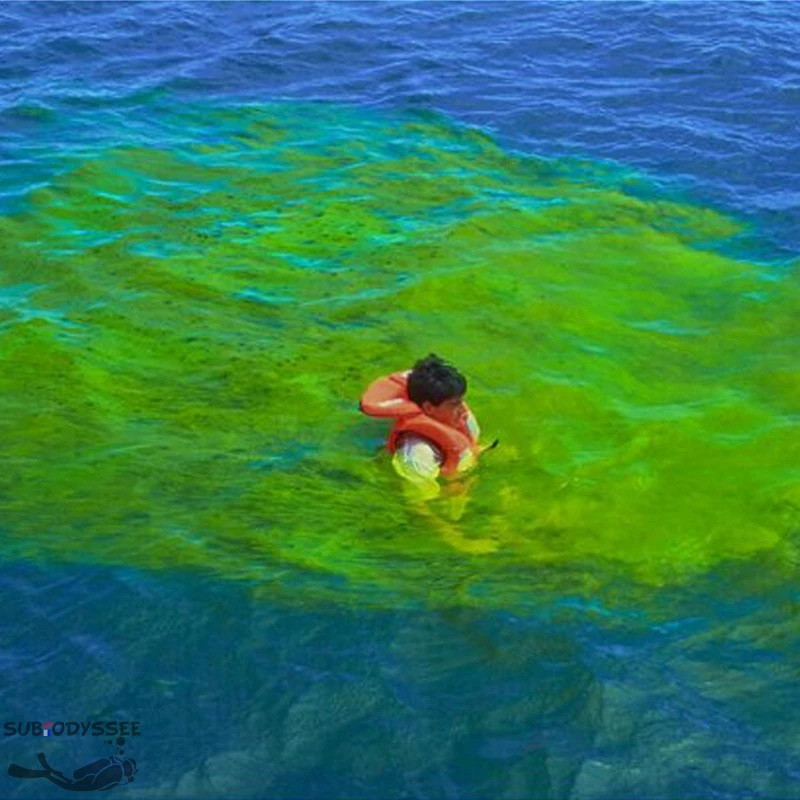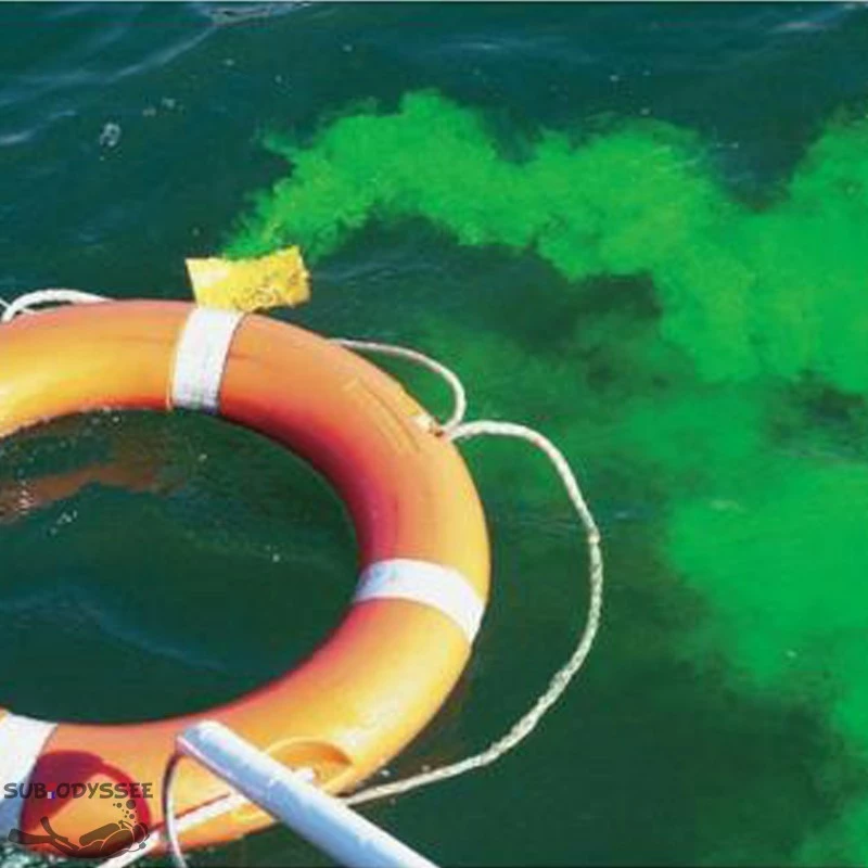 La personne en dĂ©tresse disperse la fluorescine dans l’eau ; elle se dissout instantanĂ©ment, formant une nappe fluorescente.