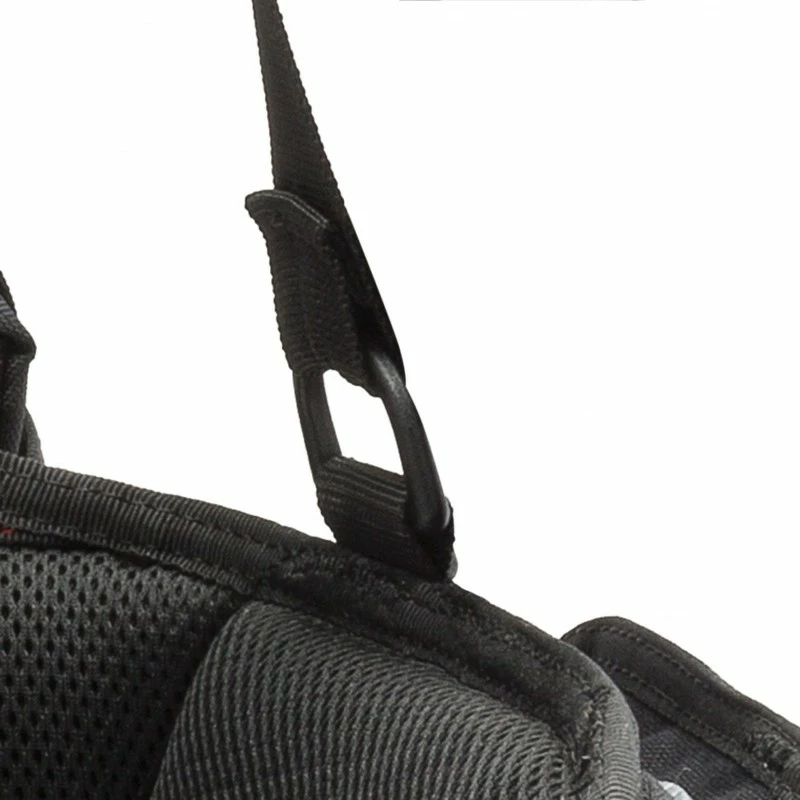 – 2 anneaux D-ring de 50mm en aluminium sur les sangles d’épaules.