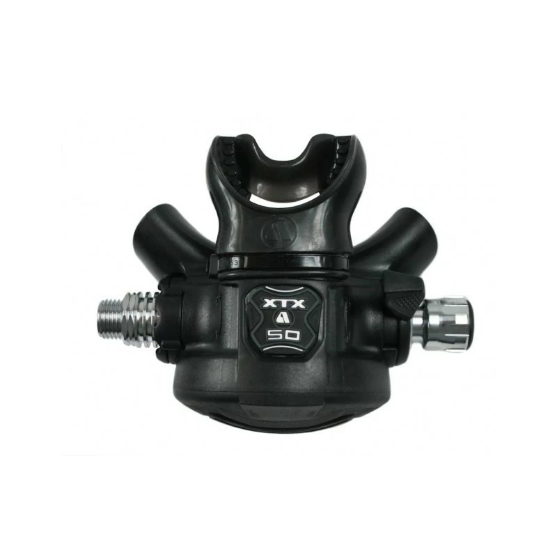 – Le bouton de purge du XTX 50 est grand & facile à manipuler, même avec des gants. Une purge progressive à 2 étapes = 1 appui sur le côté pour un débit inférieur, utile où plus de contrôle est exigé comme pour le gonflage des parachutes (de palier ou de relevage) ; & 1 appui sur le centre où le débit est important (pour purger le détendeur avant de le remettre en bouche par exemple).